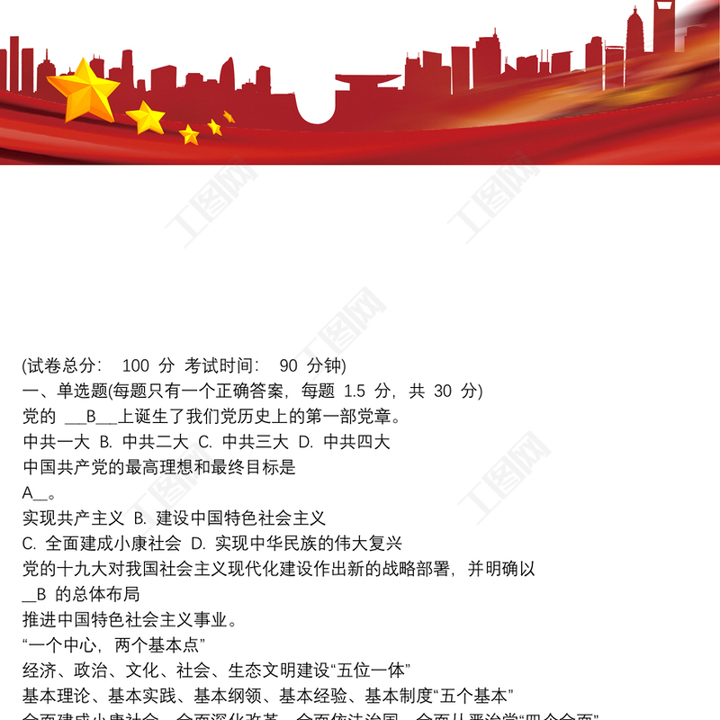 工圖網提供20xx年新版新發展黨員、發展對象培訓測試題供會員免費下載。更多精彩黨課PPT素材,盡在工圖網。