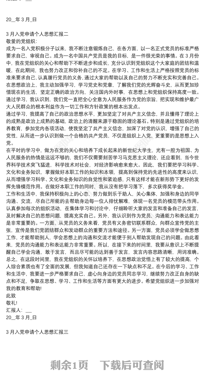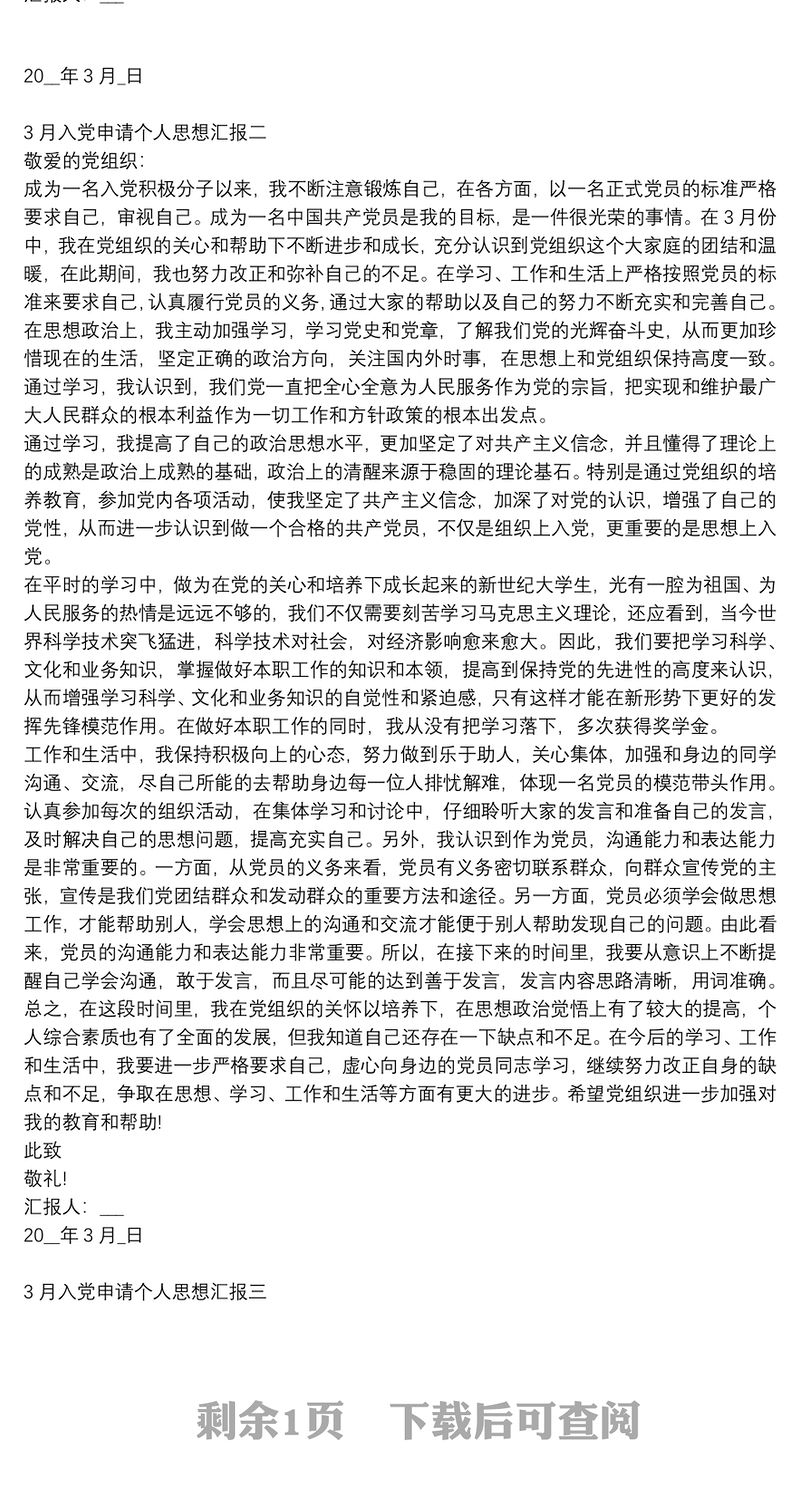 3月入黨申請(qǐng)個(gè)人思想?yún)R報(bào)3篇