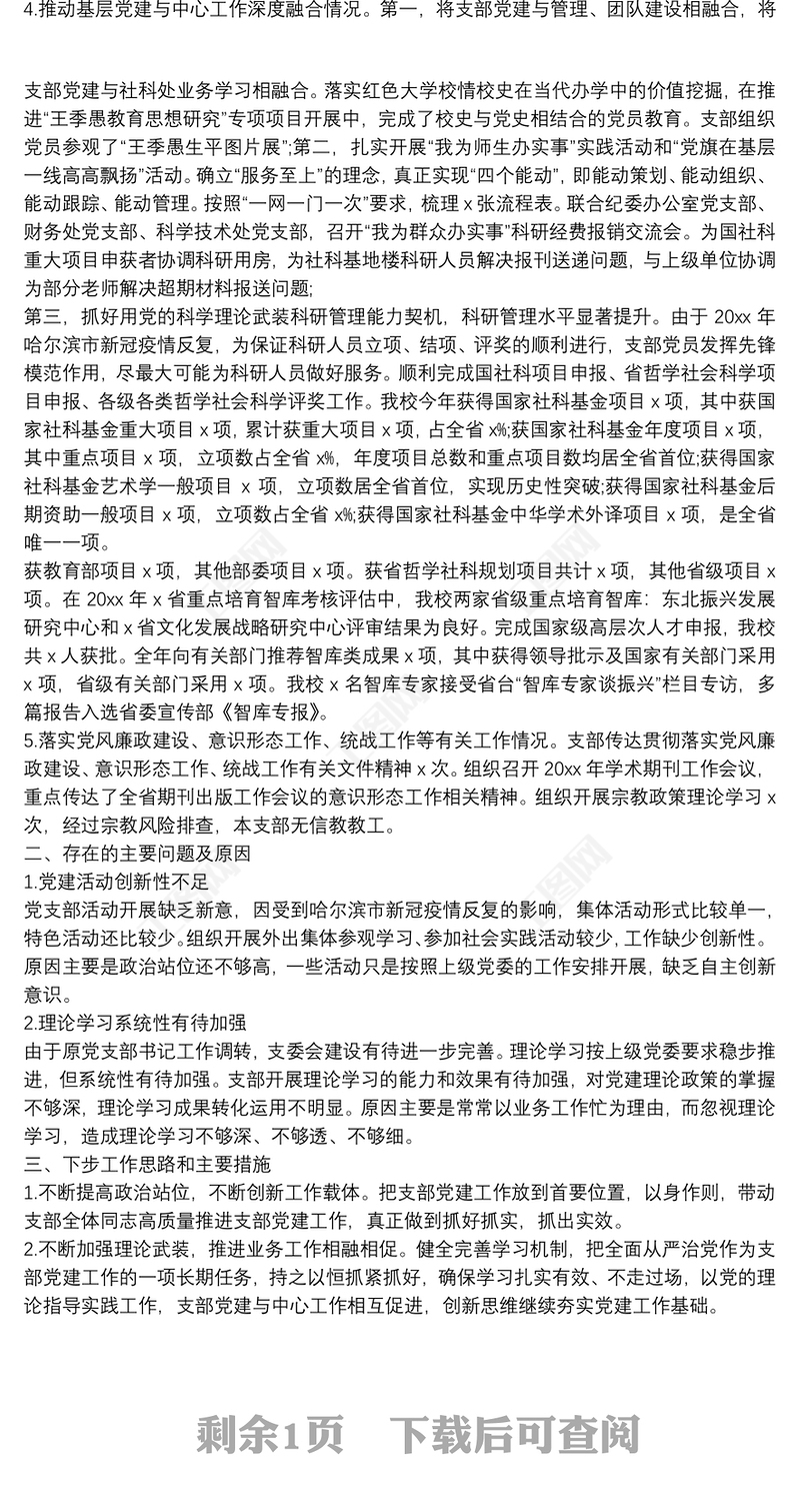 2020年某社區黨支部抓基層黨建工作總結范文包含