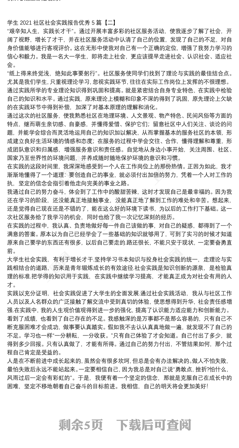 學(xué)生2021社區(qū)社會實(shí)踐報(bào)告優(yōu)秀5篇