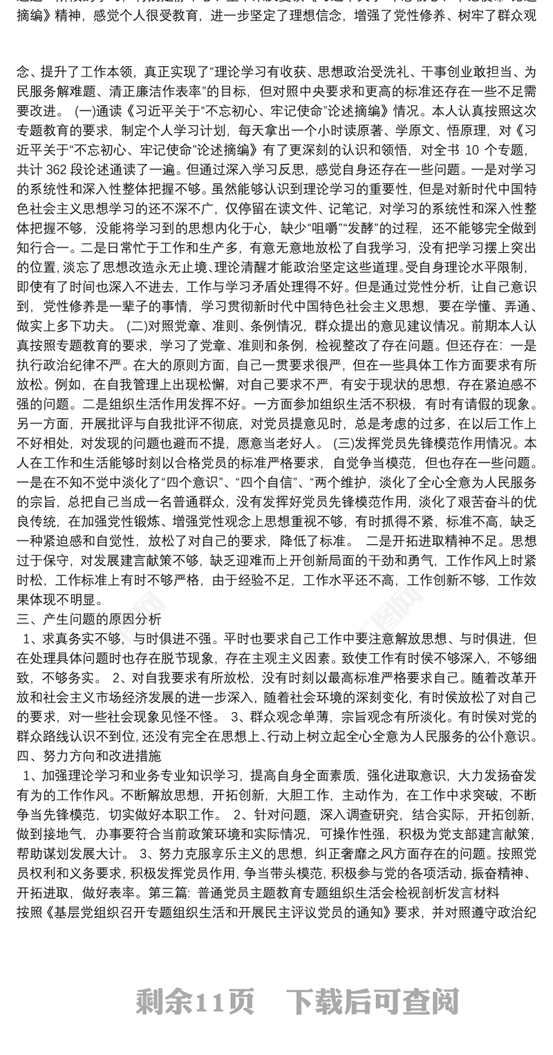 工圖網(wǎng)提供普通黨員主題教育專題組織生活會檢視剖析發(fā)言材料【九篇】供會員免費下載。更多精彩黨課PPT素材,盡在工圖網(wǎng)。