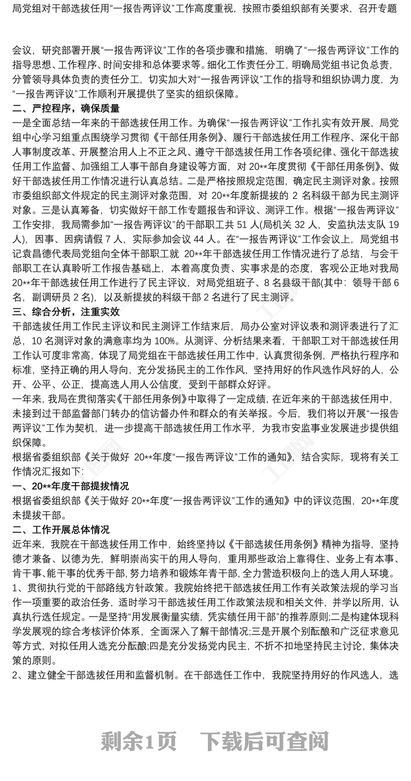 一報(bào)告兩評(píng)議 “一報(bào)告兩評(píng)議”工作情況匯報(bào)