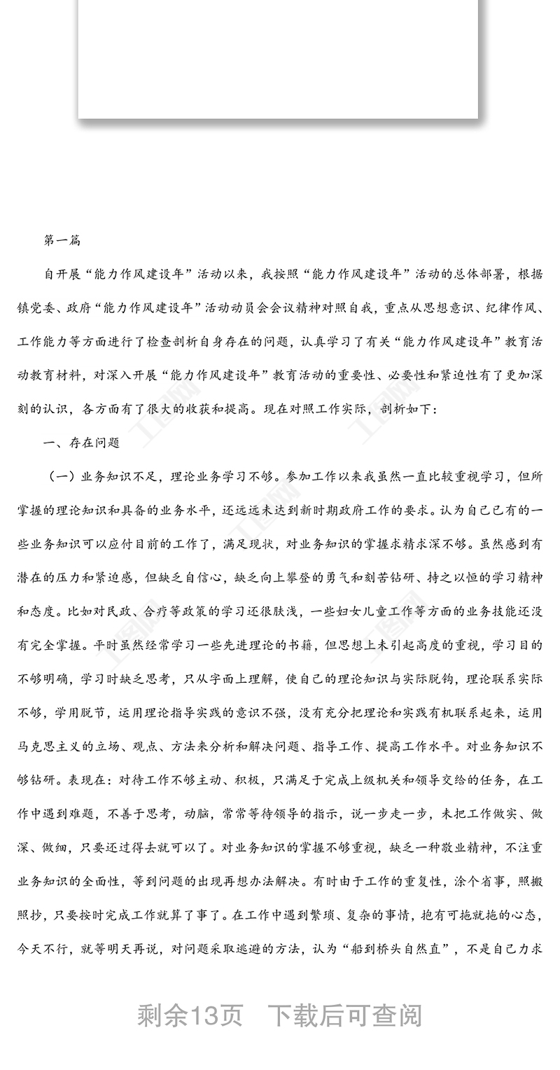 2022年“能力作風建設年”活動個人剖析材料自查報告匯編(4篇),2022年“能力作風建設年”活動個人剖析材料自查報告匯編(4篇) Array