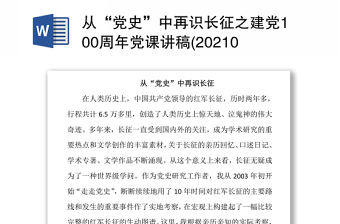 從“黨史”中再識長征之建黨100周年黨課講稿(20210224)-由作者萱兒xx098909上傳,大小1.06MB,總共6頁,適用于黨課講稿等多種場景,包含了從,黨史,中再,再識,識,長征,之,建黨,100,周年,黨課講稿,黨課,講稿,20210224