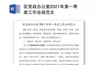 區黨政辦公室2021年第一季度工作總結范文-由作者源源ESD上傳,大小19.000KB,總共5頁,適用于公文范文等多種場景,包含了區黨政辦公室2021年第一季度工作總結范文,工作總結,公文范文
