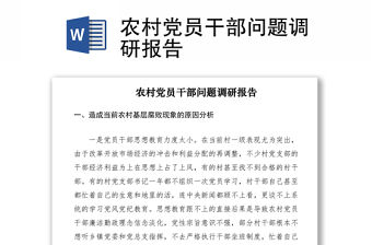 2021農(nóng)村黨員干部問題調(diào)研報告-由作者一半q234上傳,大小19.2 KB,總共2頁,適用于報告等多種場景,包含了農(nóng)村黨員干部問題調(diào)研報告