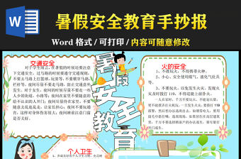 2021暑假安全教育手抄報卡通風格幼兒園暑假安全無小事小報模板-由作者崔慧珊7上傳,大小6.61MB,總共1頁,適用于安全手抄報等多種場景,包含了2021 暑假安全教育 手抄報 卡通風格 幼兒園 暑假安全 主題班會 小報模板 假期安全 安全無小事