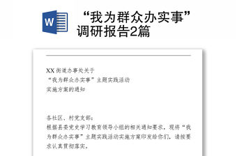 20xx年開展“我為群眾辦實事”基層調研報告范文精選-由作者如鑫如意上傳,大小12.1 KB,總共2頁,適用于報告等多種場景,包含了20,xx,年,開展,我為,為,群眾,辦實事,基層,調研報告,調研,報告,范文,精選
