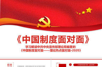 這是一套實(shí)用《中國(guó)制度面對(duì)面》PPT學(xué)習(xí)解讀中共中央宣傳部理論局編著的《中國(guó)制度面對(duì)面-理論熱點(diǎn)面對(duì)面2020》專(zhuān)題黨課課件模板下載,系作者琉璃綠翡翠上傳,編號(hào):11733189,體積11.29MB,總共30頁(yè),比例為16:9,分為封面、目錄、過(guò)渡頁(yè)、內(nèi)容、結(jié)尾5個(gè)部分。本套PPT正文部分包括大綱、詳情頁(yè)、以及致謝等部分,非常適合黨課PPT模板等多種場(chǎng)景使用。