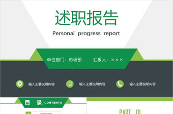 這是一套實用2022教師個人述職報告PPT綠色簡約風教師年終工作總結匯報述職報告課件模板,由作者kimi_717發布,編號:11980199,體積23.79MB,共22頁,比例為16:9,分為封面、目錄、過渡頁、內容、結尾5個部分。綠色作為主色的PPT,蘊含了生機盎然、寧靜平和。這種清新自然風格的 PPT模板,非常適合作為課件來使用。非常適合工作總結PPT等場景使用。