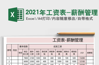 2021年工資表-薪酬管理-由作者wx134130上傳,大小,總共1頁,適用于工資表等多種場景,包含了工資表-薪酬管理