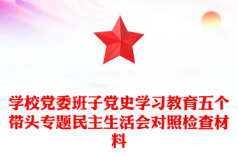 學校黨委班子黨史學習教育五個帶頭專題民主生活會對照檢查材料-由作者天報侏上傳,大小21.1 KB,總共6頁,適用于公文范文等多種場景,包含了學校,黨委,班子,黨史,學習教育,學習,教育,五,五個,個,帶頭,專題,民主生活會,民主,生活會,對照檢查材料,對照,檢查,材料