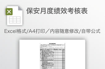 保安月度績效考核表-由作者L1n_Tong上傳,大小,總共頁,適用于人事等多種場景,包含了保安月度績效考核表,高清圖片設計素材,1920x1080:0DPI,公司專用,EXCEL表格,小清新風格,簡單背景,內容為可修改編輯,簡潔風格,A4打印文檔,表格文件