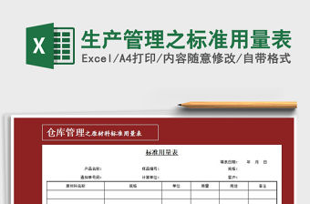 2021年生產管理之標準用量表免費下載-由作者巴薩王朝77上傳,大小,總共1頁,適用于人事等多種場景,包含了生產管理之標準用量表