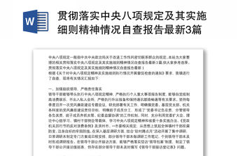 貫徹落實中央八項規定及其實施細則精神情況自查報告5篇-由作者xiaoxiaoxixixc上傳,大小27.4 KB,總共3頁,適用于報告等多種場景,包含了貫徹落實,貫徹,落實,中央八項規定,中央,及其,實施細則,實施,細則,精神,情況,自查報告,自查,報告,5,篇