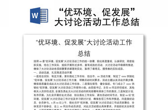 2021年“優環境、促發展”大討論活動工作總結-由作者世龍清曛汐瞿上傳,大小16.104KB,總共2頁,適用于總結等多種場景,包含了“優環境、促發展”大討論活動工作總結,工作總結,公文范文