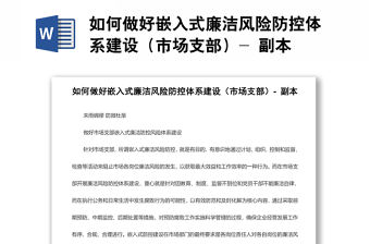 如何做好嵌入式廉潔風險防控體系建設(市場支部)- 副本-由作者sk小蕾上傳,大小14.51KB,總共3頁,適用于公文范文等多種場景,包含了如何做好,如何,做好,嵌入式,嵌入,廉潔風險防控,廉潔,風險,防控,體系建設,體系,建設,市場,支部,副本