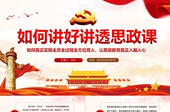 本套精美如何講好講透思政課PPT紅色黨政風黨員干部學思政教育專題黨課課件模板,系作者shy124小森森上傳,編號:12007812,大小18.33MB,總共30頁,比例為16:9,分為封面、目錄、過渡頁、內容、結尾5個部分。PPT以紅色做為主題色,搭配淺色背景,極為醒目。結構完整;過渡頁設計統一,使得整個PPT富有層次感。動畫設計上也做的非常精細,元素按設定規律展現,演示起來更為流暢。本模板適用于黨課PPT模板等多種場景。