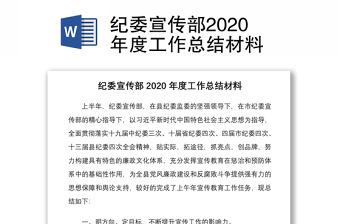 紀委宣傳部2020年度工作總結材料-由作者擠擠總會有的啊上傳,大小18.8 KB,總共2頁,適用于總結等多種場景,包含了紀委,宣傳部,宣傳,2020,年度工作,年度,工作,總結材料,總結,材料