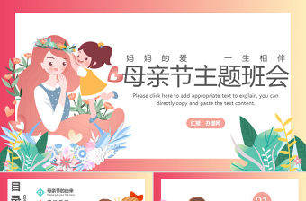 本套實用2022母親節主題班會PPT溫馨卡通風母親節主題課件模板,為作者黃鯨魚的小鯨魚上傳,編號:12156464,體積30.79MB,總共28頁,比例為16:9,分為封面、目錄、過渡頁、內容、結尾5個部分。這種敢于想象和打破常規的鬼馬個性PPT非常適合其它PPT模板等多種應用場景。