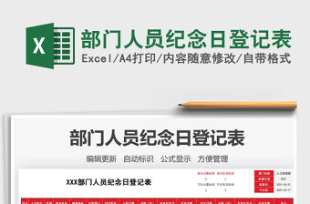 2021年部門人員紀念日登記表-由作者唯愛miomio07上傳,大小,總共1頁,適用于登記表等多種場景,包含了部門人員紀念日登記表