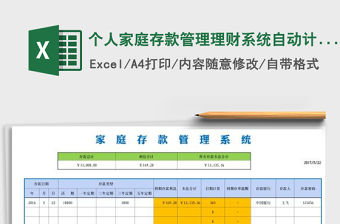 2021年個(gè)人家庭存款管理理財(cái)系統(tǒng)自動計(jì)算表-由作者天蝎張小貓上傳,大小,總共1頁,適用于工資表等多種場景,包含了個(gè)人家庭存款管理理財(cái)系統(tǒng)自動計(jì)算表