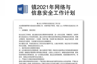 鎮2021年網絡與信息安全工作計劃-由作者老村長帕西諾上傳,大小12.0 KB,總共1頁,適用于計劃方案等多種場景,包含了鎮,2021,年,網絡與信息安全,網絡,工作計劃,工作,計劃