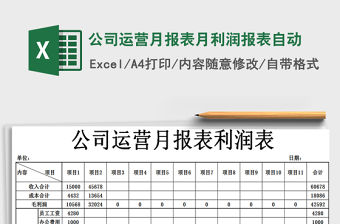 2021年公司運(yùn)營月報(bào)表月利潤報(bào)表自動-由作者痞出一片天上傳,大小,總共1頁,適用于利潤表等多種場景,包含了公司運(yùn)營月報(bào)表月利潤報(bào)表自動