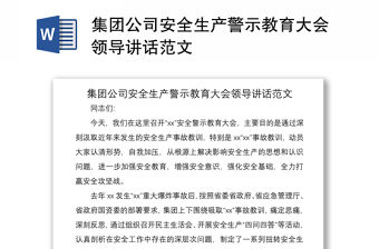 集團公司安全生產警示教育大會領導講話范文 同志們: 今天,我們在這里召開“xx”安全警示教育大會,主要目的是通過深刻汲取近年來發生的安全