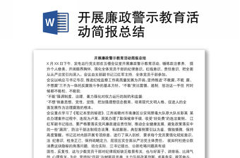 開展廉政警示教育活動簡報總結-由作者森林狼684上傳,大小10.8 KB,總共1頁,適用于公文范文等多種場景,包含了開展廉政警示教育活動簡報總結,報告總結