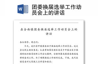 在合面鎮(zhèn)團(tuán)委換屆選舉工作動(dòng)員會上的講話各位領(lǐng)導(dǎo)、同志們: 今天,我們召開鎮(zhèn)團(tuán)委班子換屆選舉工作動(dòng)員會。這次會議的主要任務(wù)是:認(rèn)真貫徹落實(shí)團(tuán)區(qū)委關(guān)于開展全區(qū)鄉(xiāng)鎮(zhèn)團(tuán)的組織格局創(chuàng)新工作會議精神,安排部署我鎮(zhèn)團(tuán)委換屆選舉的各項(xiàng)工作。為了確保換屆工作順利完成,下面,我代表鎮(zhèn)黨委對大家提三點(diǎn)希望和要求: 一、以