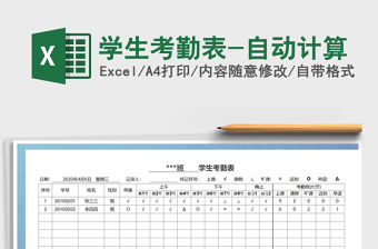 2022年學生考勤表-自動計算免費下載-由作者心隨丶冪動上傳,大小,總共1頁,適用于考勤表等多種場景,包含了學生考勤表-自動計算
