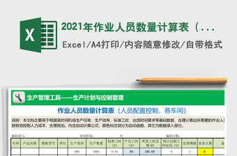 2021年作業人員數量計算表(人員配置控制,各車間)-由作者粉紅豬hh上傳,大小,總共1頁,適用于行政等多種場景,包含了作業人員數量計算表(人員配置控制,各車間)