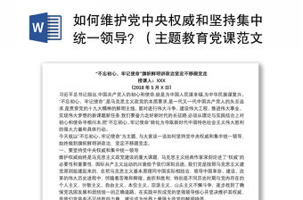 如何維護黨中央權威和堅持集中統一領導?(主題教育黨課范文)下載-由作者卜晚漁上傳,大小17.1 KB,總共3頁,適用于公文范文等多種場景,包含了如何,維護,黨中央,權威,和,堅持,集中,統一,領導,主題教育,主題,教育,黨課,范文
