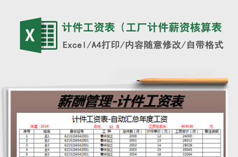 計件工資Excel表格工資管理系統-由作者放好風箏牽好線上傳,大小1 MB,總共1頁,適用于人事等多種場景,包含了管理系統,財務報表表格,表格,個人簡歷表格,表格ppt,數據表