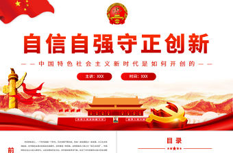 這套通用自信自強守正創新PPT深入學習中國特色社會主義新時代是如何開創的,為作者我是我7753上傳,編號:12165336,大小15.22MB,總共25頁,比例為16:9,由封面、目錄、轉場頁、內容、結尾5個部分構成。這種敢于想象和打破常規的鬼馬個性PPT非常適合黨課PPT模板等多種應用場景。