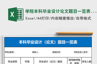 學院本科畢業設計論文題目一覽表Excel表格-由作者mannve上傳,大小1 MB,總共1頁,適用于學校等多種場景,包含了畢業設計,畢業設計開題報告,畢業設計答辯,畢業設計ppt,畢業設計展板,室內設計畢業答辯