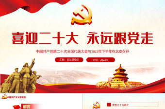 這套實用喜迎二十大永遠跟黨走PPT紅色黨政風黨員干部學習輔導微黨課課件,為作者烏鴉掩月上傳,編號:12117187,體積17.10MB,共25頁,比例為16:9,由封面、目錄、轉場頁、內容、結尾5個部分構成。PPT以紅色做為主題色,搭配淺色背景,極為醒目。結構完整;過渡頁設計統一,使得整個PPT富有層次感。動畫設計上也做的非常精細,元素按設定規律展現,演示起來更為流暢。本模板適用于黨課PPT模板等多種場景。