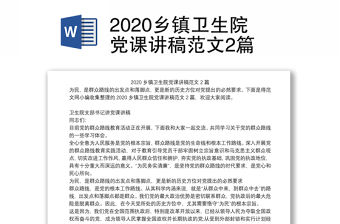 2020鄉(xiāng)鎮(zhèn)衛(wèi)生院黨課講稿范文2篇-由作者突然離開qwerty上傳,大小19.3 KB,總共3頁,適用于黨課講稿等多種場(chǎng)景,包含了2020,鄉(xiāng)鎮(zhèn)衛(wèi)生院,鄉(xiāng)鎮(zhèn),衛(wèi)生院,黨課講稿,黨課,講稿,范文,2,篇