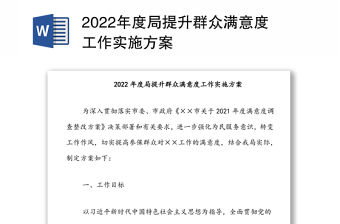 2022年度局提升群眾滿意度工作實施方案-由作者緩飄的楓葉2010上傳,大小18.405KB,總共6頁,適用于公文范文等多種場景,包含了2022年度局提升群眾滿意度工作實施方案,2022年度局提升群眾滿意度工作實施方案