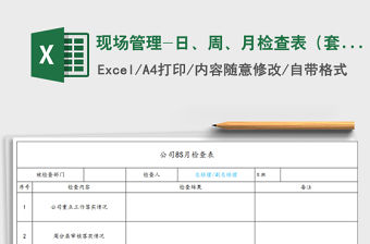 2021年現(xiàn)場管理-日、周、月檢查表(套表)-由作者是郭郭不是法法上傳,大小,總共1頁,適用于黨政機(jī)關(guān)等多種場景,包含了現(xiàn)場管理-日、周、月檢查表(套表)