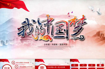 本套精美紅色風格的我的中國夢PPT,系作者勿言往昔上傳,編號:11117624,體積5.78M,總共25頁,比例為16:9,分為封面、目錄、過渡頁、內容、結尾5個部分。PPT以紅色做為主題色,搭配淺色背景,極為醒目。結構完整;過渡頁設計統一,使得整個PPT富有層次感。動畫設計上也做的非常精細,元素按設定規律展現,演示起來更為流暢。非常適合匯報|報告PPT等場景使用。