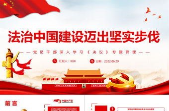這套實(shí)用紅色大氣黨政風(fēng)全面解讀中共中央印發(fā)法治中國建設(shè)規(guī)劃PPT,由作者彩票寶吧發(fā)布,編號(hào):11581769,大小12.08MB,總共43張,比例為16:9,分為封面、目錄、過渡頁、內(nèi)容、結(jié)尾5個(gè)部分。PPT以紅色做為主題色,搭配淺色背景,極為醒目。結(jié)構(gòu)完整;過渡頁設(shè)計(jì)統(tǒng)一,使得整個(gè)PPT富有層次感。動(dòng)畫設(shè)計(jì)上也做的非常精細(xì),元素按設(shè)定規(guī)律展現(xiàn),演示起來更為流暢。本套PPT正文部分包括大綱、詳情頁、以及致謝等部分,非常適合黨課PPT模板等多種場景使用。