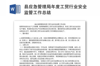 縣應(yīng)急管理局年度工貿(mào)行業(yè)安全監(jiān)管工作總結(jié)-由作者禹澤steven上傳,大小12.7 KB,總共1頁,適用于總結(jié)等多種場景,包含了縣,應(yīng)急,管理局,管理,年度,工貿(mào),行業(yè),安全監(jiān)管,安全,監(jiān)管,工作總結(jié),工作,總結(jié)