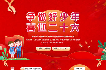 此套通用2022爭做好少年喜迎二十大PPT紅色簡約爭做好少年喜迎二十大中小學生學習二十大主題班會課件模板,由作者yusiyuan0521上傳,編號:12236788,大小23.0 MB,總共19頁,比例為16:9,分為封面、目錄、過渡頁、內容、結尾5個部分。PPT以紅色做為主題色,搭配淺色背景,極為醒目。結構完整;過渡頁設計統一,使得整個PPT富有層次感。動畫設計上也做的非常精細,元素按設定規律展現,演示起來更為流暢。本套PPT正文部分包括大綱、詳情頁、以及致謝等部分,非常適合黨課PPT模板等多種場景使用。