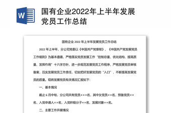 國有企業2022年上半年發展黨員工作總結-由作者結實的CZ冰上傳,大小14.041KB,總共3頁,適用于總結等多種場景,包含了國有企業2022年上半年發展黨員工作總結,國有企業2022年上半年發展黨員工作總結