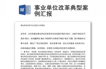 事業(yè)單位改革典型案例匯報(bào)-由作者wsMAMENGXUAN上傳,大小11.0 KB,總共1頁(yè),適用于公文范文等多種場(chǎng)景,包含了事業(yè)單位,事業(yè),單位,改革,典型案例,典型,案例,匯報(bào)