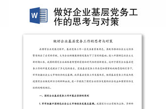 做好企業基層黨務工作的思考與對策-由作者大口籠包上傳,大小15.250KB,總共5頁,適用于公文范文等多種場景,包含了做好企業基層黨務工作的思考與對策,做好企業基層黨務工作的思考與對策
