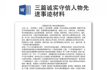 三篇誠(chéng)實(shí)守信人物先進(jìn)事跡材料-由作者曾過往不及回首上傳,大小24.7 KB,總共3頁,適用于公文范文等多種場(chǎng)景,包含了三篇,篇,誠(chéng)實(shí)守信,誠(chéng)實(shí),守信,人物,先進(jìn)事跡材料,先進(jìn),事跡,材料