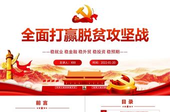 本套精美決戰決勝脫貧攻堅從取得決定性成就到奪取全面勝利動態PPT5,是由作者發布,編號:11457701,大小7.16MB,共24頁,比例為16:9,分為封面、目錄、過渡頁、內容、結尾5個部分。非常適合黨課PPT模板等場景使用。